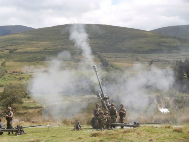 Attendees moved to the Gun Position where both the 1 and 2 Artillery Regiments were deployed as a composite 8 gun battery, firing 105mm Guns. Lieutenant Duffy, 1 Artillery Regiment was the Gun Position Officer, and Capt O’Riordan, 2 Artillery Regiment was the CPO. Personnel from both the Permanent Defence Force and Army Reserve were deployed on the gun line.